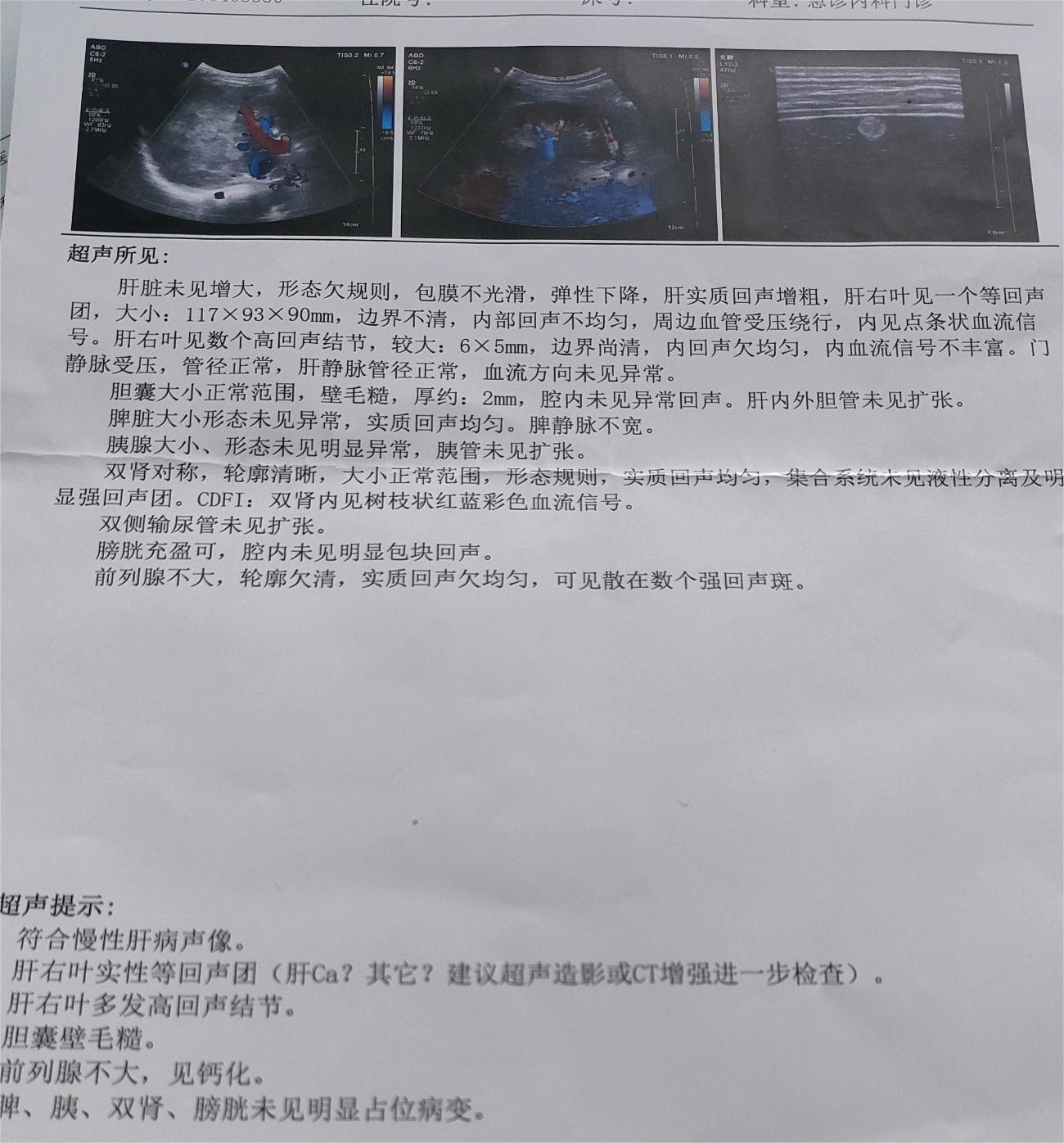 第三天CT和验血结果出来了,医生说确诊是肝癌,而且是晚期(2~3期)。虽然我己做好了最坏的打算,可谁又能接受自己此刻被宣判死刑呢?我今年才41岁,医生跟我说这一结果时,我的心比的沉重,我闭上眼睛,眼泪禁不住的留了出来。我72岁的老父亲就在身边,我不知他此到的心情是怎样?